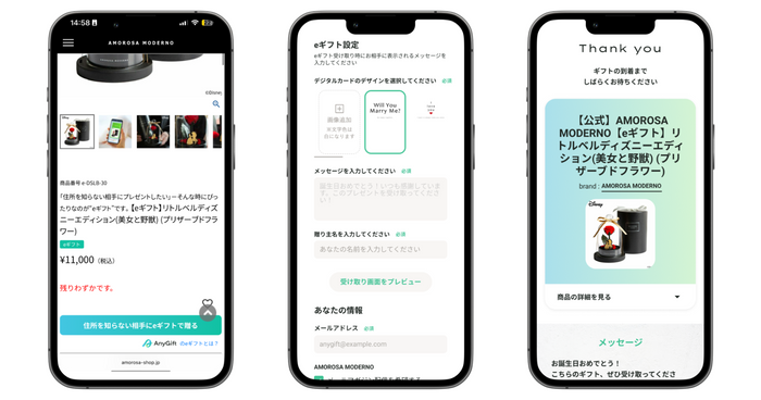 住所不要!SNSやLINEですぐに贈れる ― プリザーブドローズブランドAMOROSA MODERNO 公式オンラインストアで、eギフトサービス『AnyGift』を導入