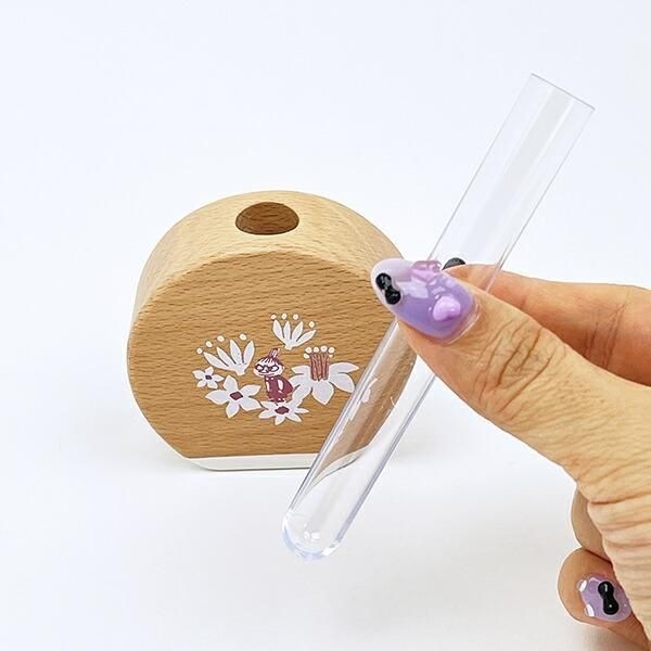 後ろにはムーミンのロゴ入り。どんなお花にも似合います。子どもが摘んできてくれたお花や葉っぱを飾ってもおしゃれになりそう。