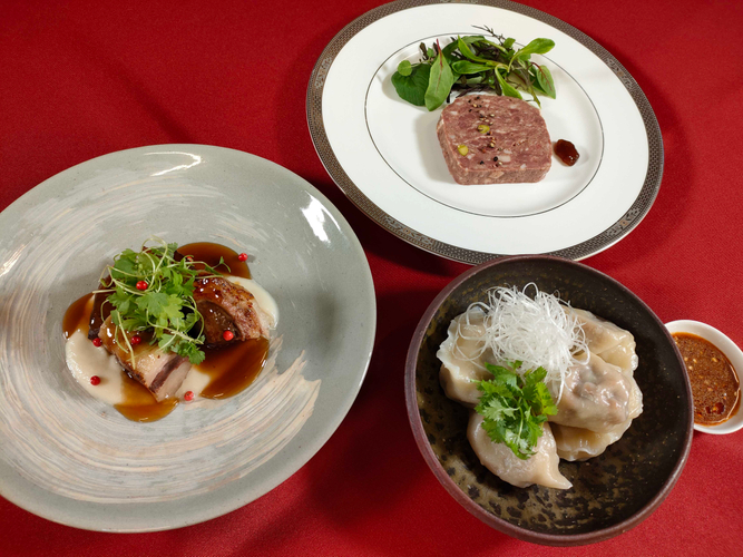 近年、野生鳥獣が及ぼす被害を抑制するため、捕獲後の利用という目的でも、SDGsの観点からも、国産ジビエの利用を推進する動きがあるが、いざ調理をとなると難しい。ここでは和洋中の新たな国産ジビエ料理を、辻󠄀調理師専門学校から提案してもらった。同校山田研氏の解説の下、村島弘樹氏(日本料理)、永田智大氏 (西洋料理)、船渡兼市氏(中国料理)により魅力的なジビエ料理が次々に並んだ。