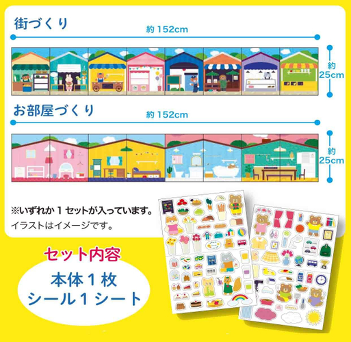 デザインは「街づくり」と「お部屋づくり」の2種類で、それぞれに合わせたシール1シートが入っています。