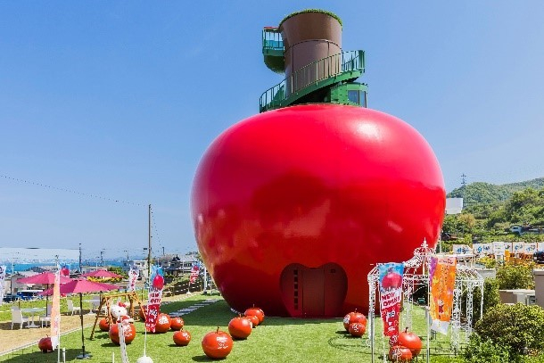 「ハローキティ」のりんごのおうちをコンセプトにした世界最大のりんご型展望シアター。直径14mある360°のドーム シアターを設置し、ハローキティが「HELLO KITTY SHOW BOX」で開催されるショーの準備をする様子やハローキティの好きなものが次々に登場する夢の世界をプロジェクションマッピングで表現します。高さ15mの展望 デッキからは、地上から決して見ることができない「HELLO KITTY SHOW BOX」の屋根に描かれたハローキティの顔や、夕陽100選に選ばれた播磨灘の海を一望することができます。