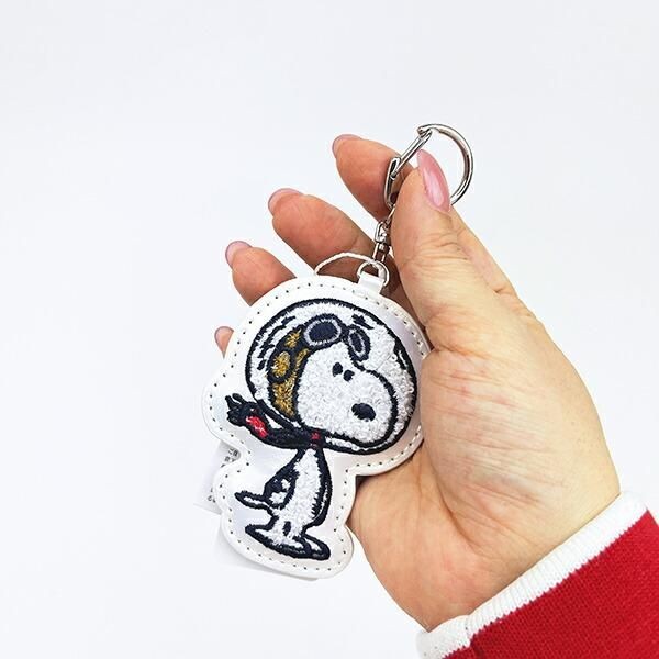続いてご紹介するアイテムは優しい仕上がりになるサガラ刺繡の、スヌーピーのキーホルダーです。