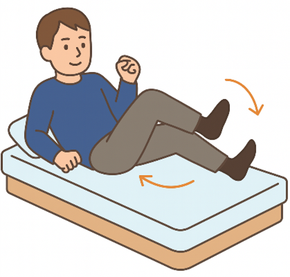 布団の中で横になった状態で、両腕を曲げて脇にぴったりとくっつけて、腕をふるようにこすりつけます。さらに、膝を少し曲げて内またに寄せ、小刻みに走る(ダッシュする)ような動作で、深呼吸をしながら、体全体を動かします。ダッシュ体操により、朝布団を出る前に数十秒で体温が上昇します。この運動によりモーニングサージが起こる原因である「大きな寒暖差」を予防することができます。