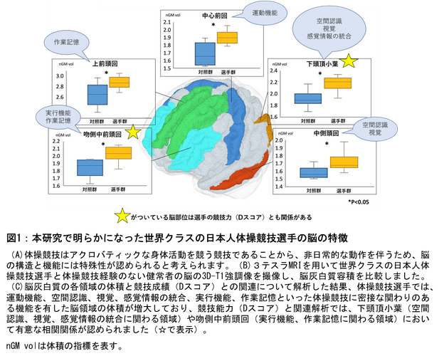 ・体操競技選手に特徴的な脳の構造と競技力に関連する脳領域が明らかに