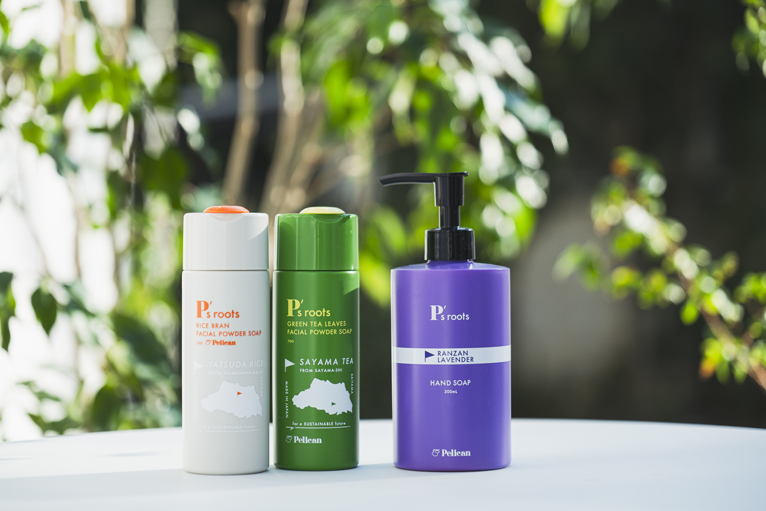『P's roots(ピーズルーツ)』の「P」は、ペリカンの「P」。ペリカン石鹸の原点=ルーツ(roots)である、埼玉県の選りすぐりの天然素材を使い、手間ひまかけて開発したブランドです。