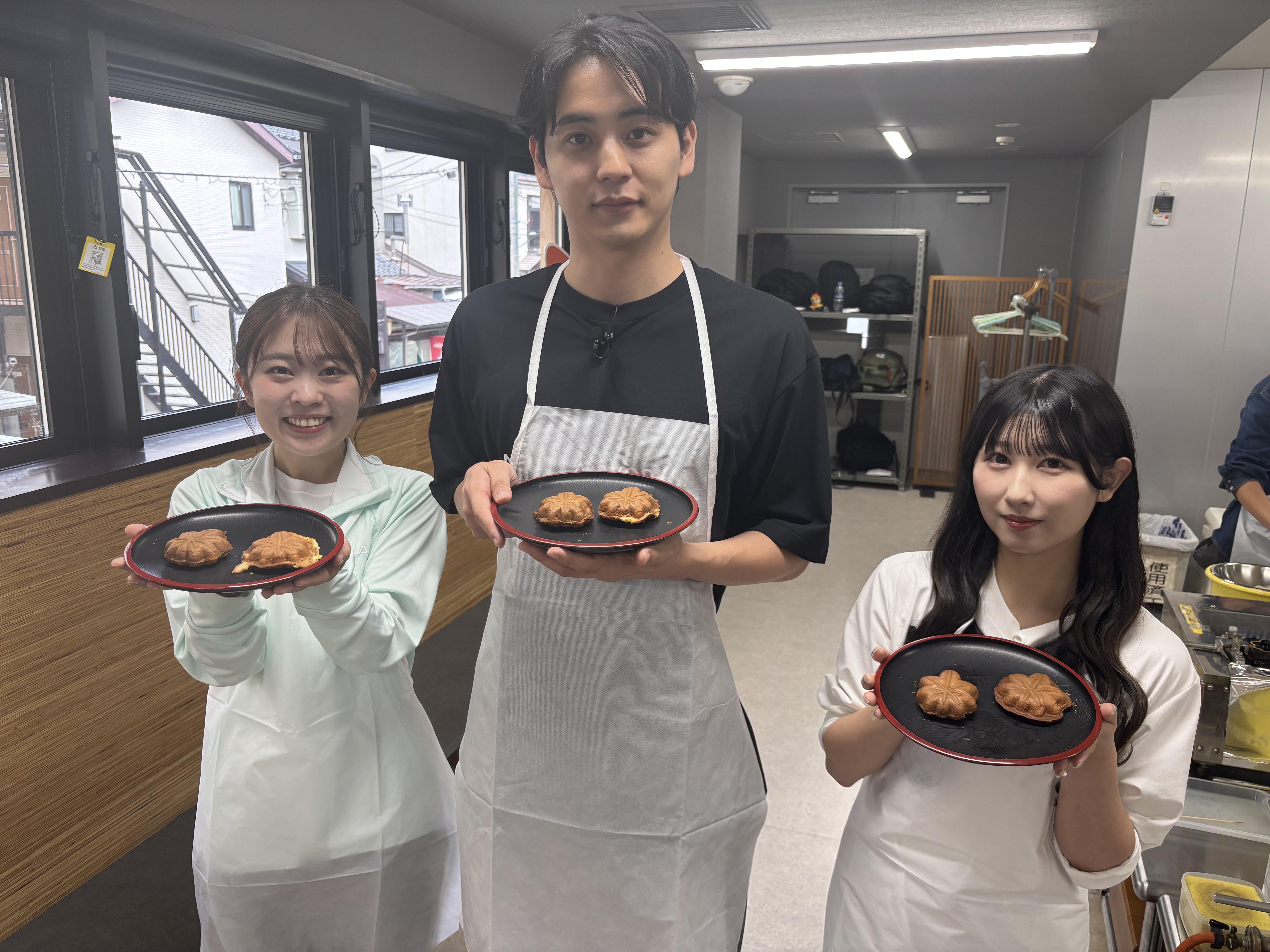 桟橋前をスタートしたランナーたちは厳島神社を目指して商店街方面へ。宮島観光でおなじみの人力車を体験、さらに ”センスが問われる” もみじ饅頭の手焼き体験では、誰が一番うまく焼けたのか?チェックしてみて!