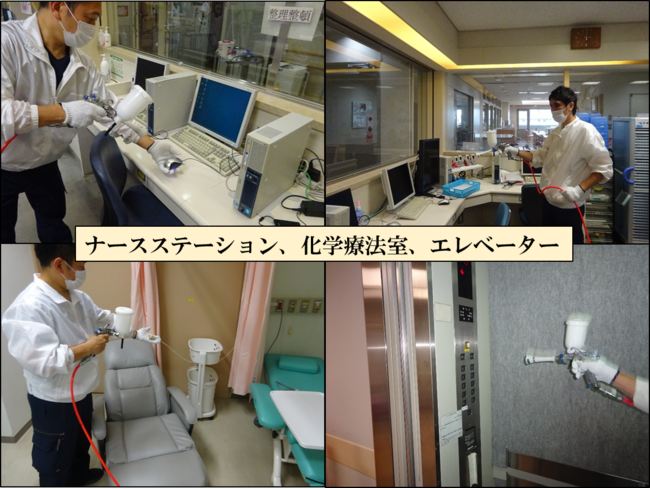 今回、抗菌バリアコーティングの施工を完了した十三市民病院は、4月27日より一般外来を休止し、新型コロナウイルス感染症患者の入院受入を行う重点医療機関として、中等症の入院患者の対応にのみ専念してこられました。この度、外来受け入れの目処がたったため、当社施工チームによる抗菌バリアコーティング剤の吹き付けを7月13日から15日の3日間にわたって院内各所に施工。再開への準備を進めています。