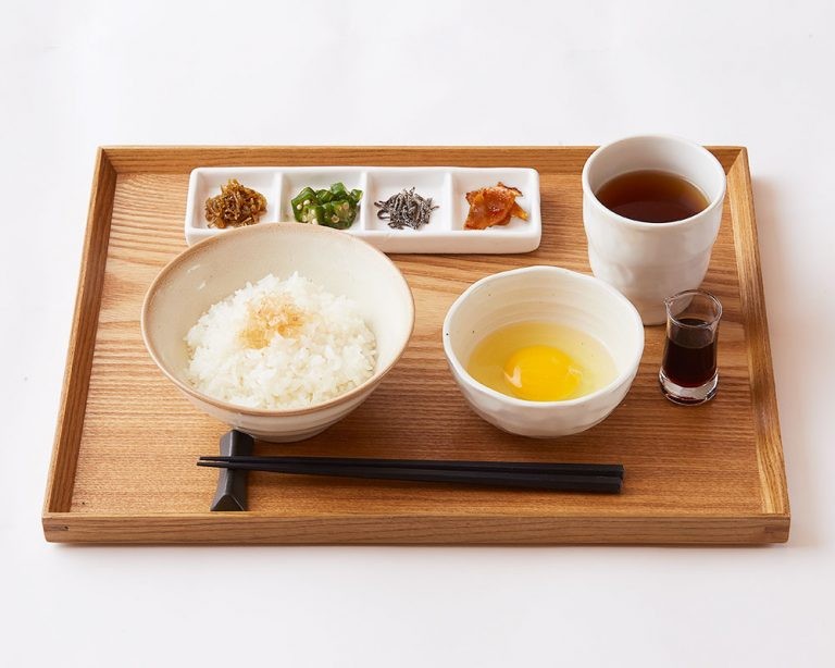 直営農場の平飼いたまごを使用。北海道蘭越町産ゆめぴりかを使用したブランド米に、こだわりのお醤油でお召し上がりいただけます。