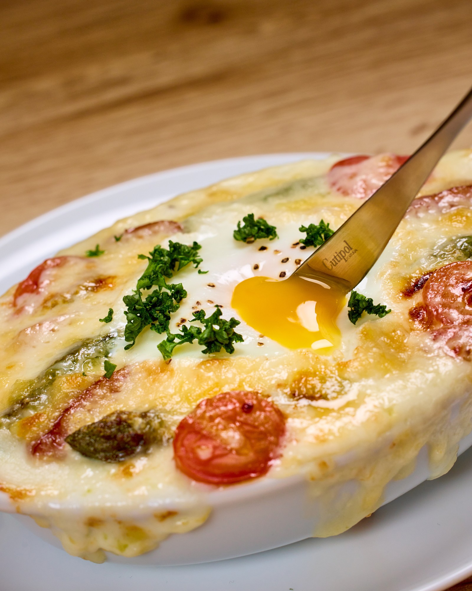 放牧牛乳のベシャメルソースに、半熟たまごを乗せたとろけるおいしさ