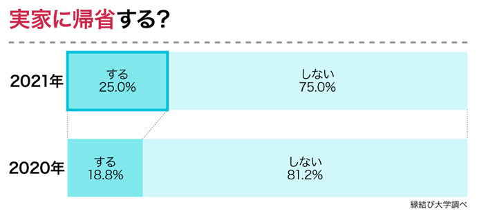 「実家に帰省する」は25%、昨年よりも6.2ポイント増加