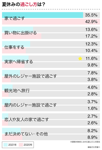 夏休みを「家で過ごす」人は35.5%で、昨年よりも7.4ポイント減少