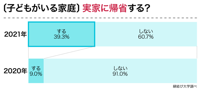 子どもがいる家庭では「帰省する」が、昨年より30ポイントの増加に