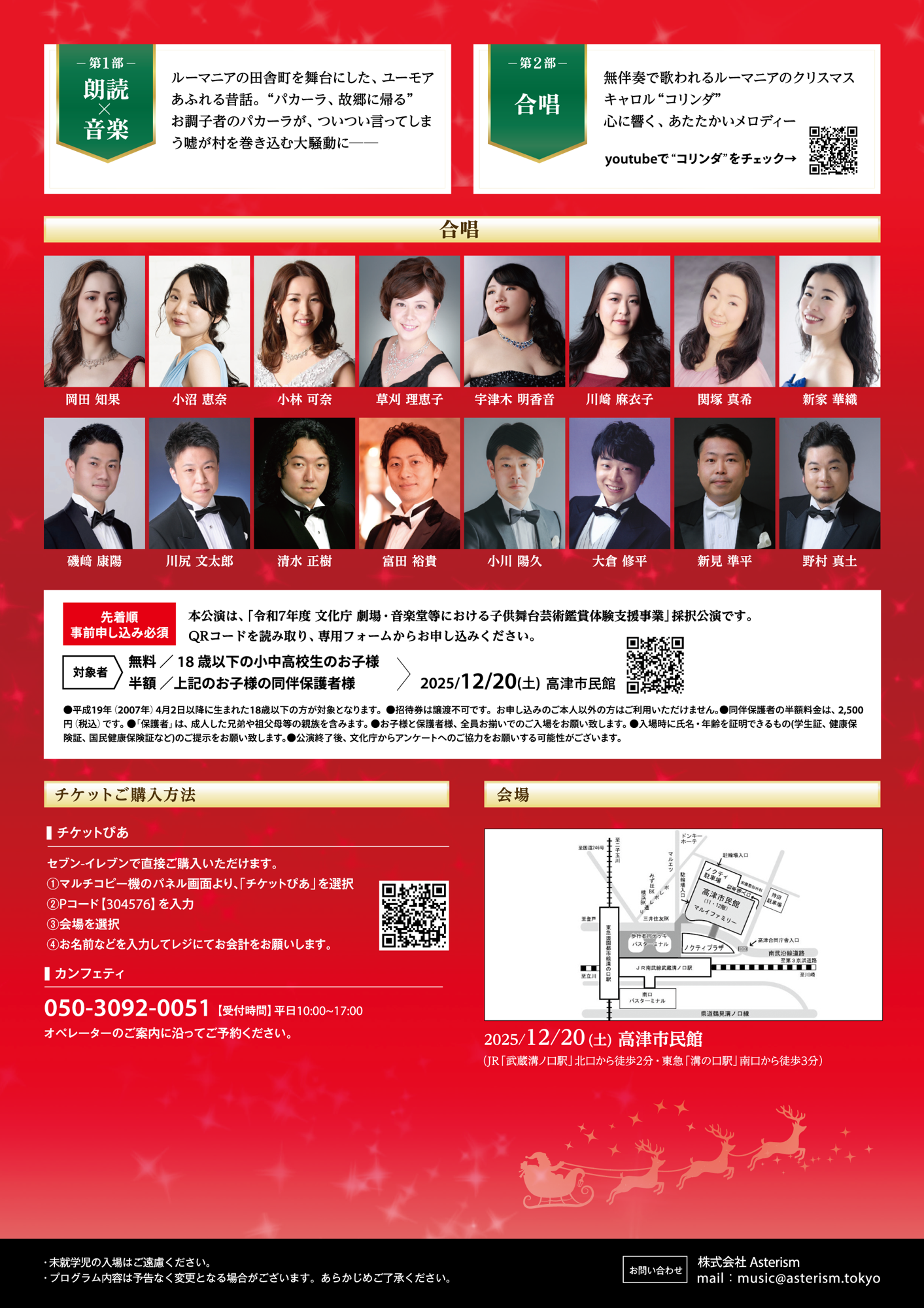株式会社Asterism主催、『ルーマニアのクリスマス』が2025年12月18日 (木)~12月20日 (土)に以下3会場にて開催されます。溝の口公演の朗読には、声優の芹澤 優氏の出演が決定しました。