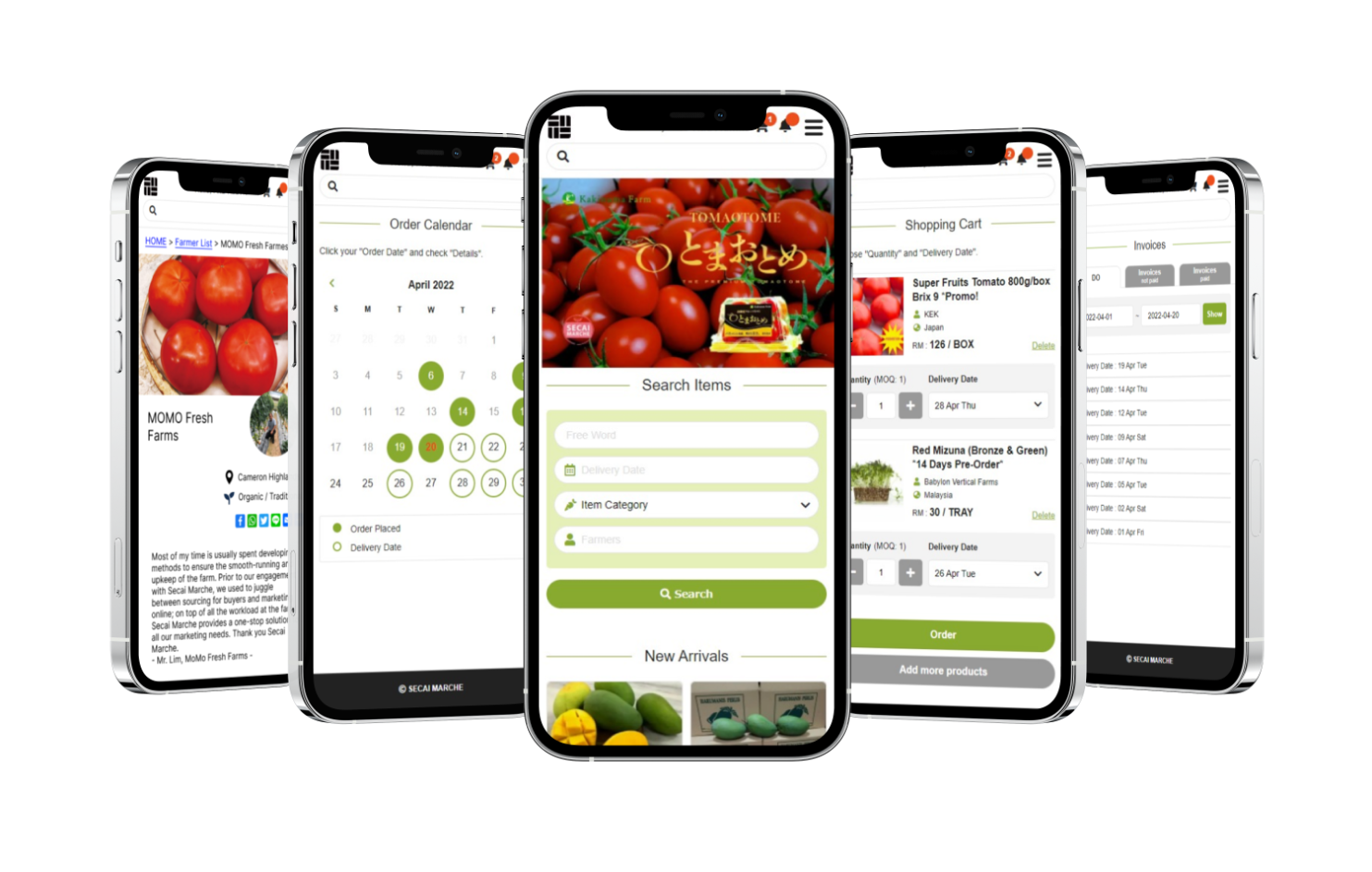 SECAI MARCHEは、生産者と飲食店・小売店舗を中心とした消費者を直接つなぐB2B産直ECとして2019年に事業を開始しました。革新的なIT技術と持続可能な農業支援を組み合わせ、流通の透明性向上と食品ロス削減に取り組むことで、新たな農業・食産業の未来を切り拓いています。現在はマレーシア・クアラルンプールにおいてハイエンド市場シェア90%超を獲得するなど、東南アジアを代表する産直プラットフォームへと成長しています。