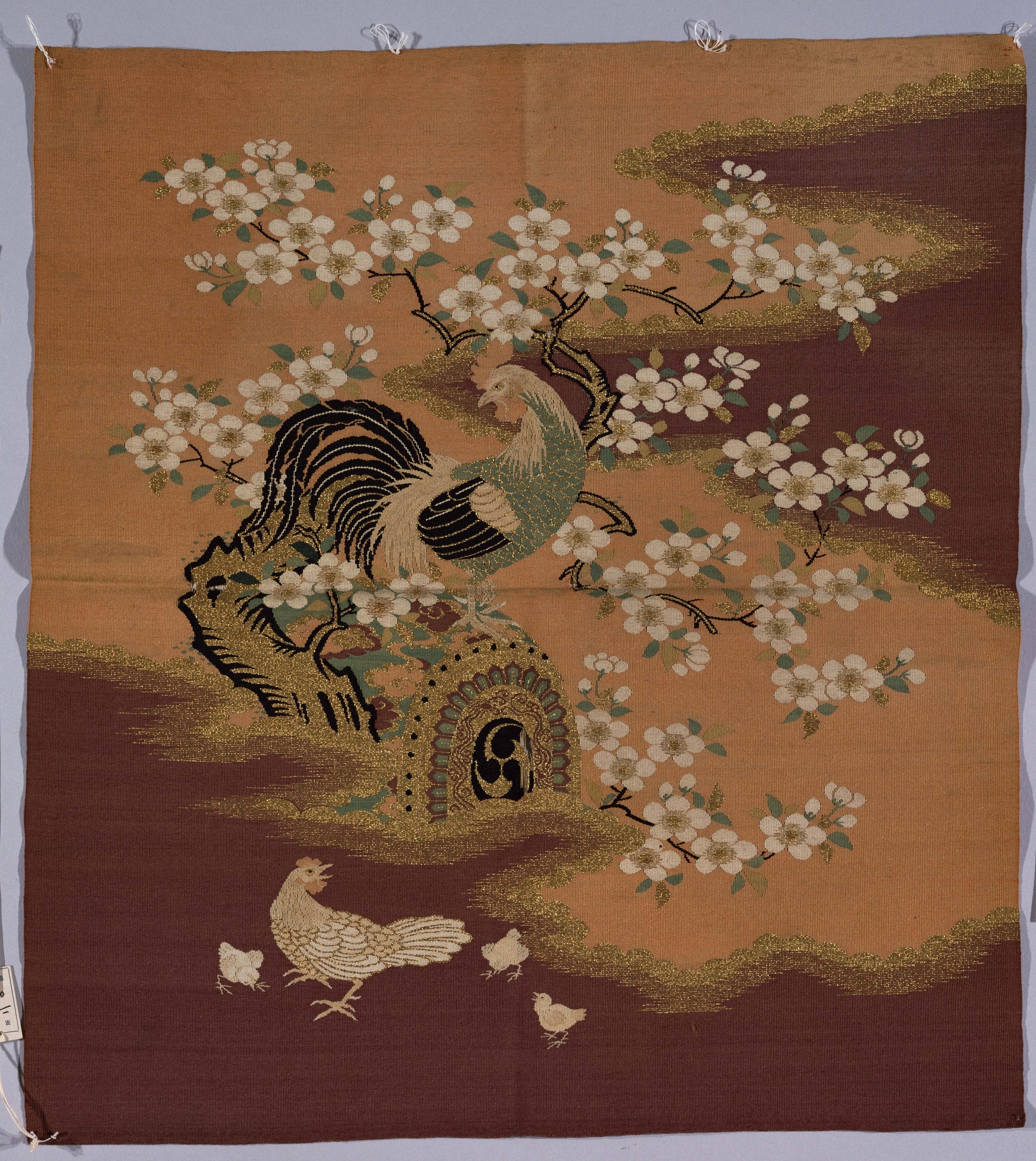 7. 袱紗 紫地鶏桜火焔太鼓模様綴織(ふくさ むらさきじにわとりさくらかえんだいこもようつづれおり)