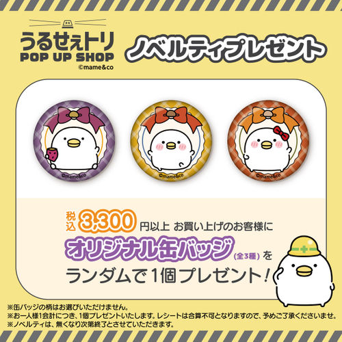 3,300円お買い上げのお客様には秋をイメージしたデザインの非売品缶バッジ(全3柄)をランダムで1個プレゼント!(なくなり次第終了)