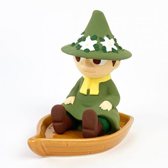 最後は皆さんお待ちかねのスナフキンです。船に乗った姿が黄昏の旅人っぽくてカッコいいです♪ブーツやマフラー、お花の付いた帽子など身に着けている小物も細かく作られていますね。シルエットが描かれた可愛い箱も付いているので、プレゼントにもピッタリ♡