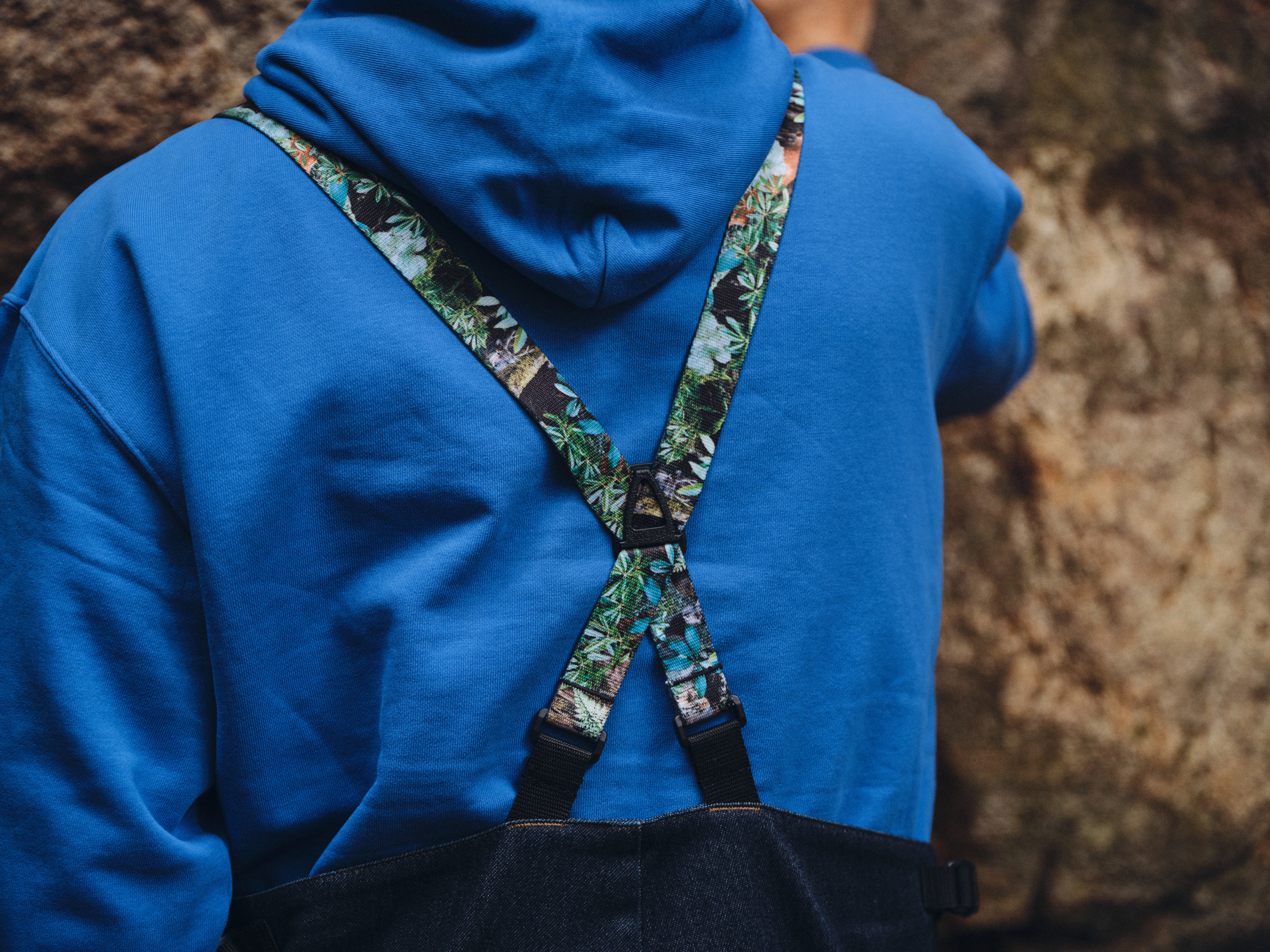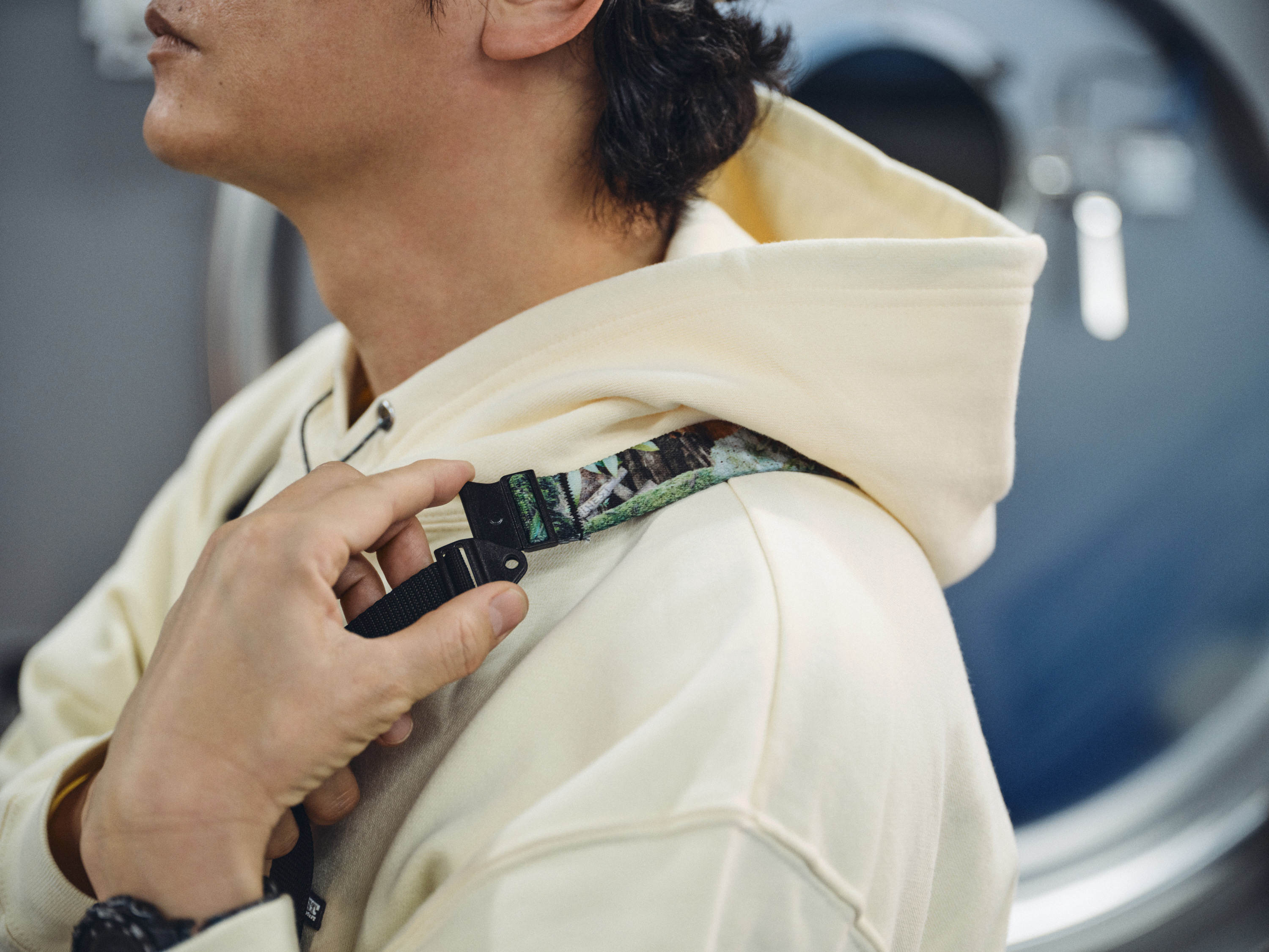 また、肩紐には「YAKUSHIMA Forestra Camoベルト」を採用。肩紐を下ろした状態で着用すると、ベルトの裏面の「屋久島の花崗岩×ダブルネームのロゴ」が表に出てくるスペシャル仕様。さらに同様のスペシャル仕様で腰に巻くベルトも作成。※ベルトは別売りになります。