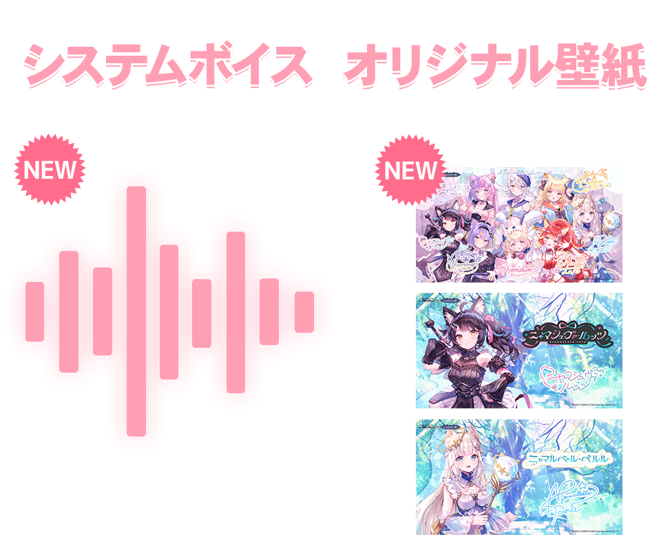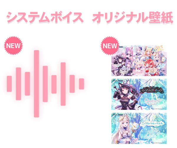 購入者限定でダウンロードできる「ニャマシュヴァ・ルッツ」「ニャマルベール・ペルル」オリジナル壁紙とシステムボイスが追加。