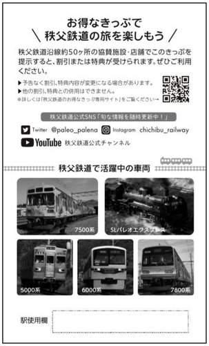 ●対象きっぷ:「秩父路遊々フリーきっぷ」「長瀞秩父おでかけきっぷ」大人/小児 使用済きっぷ