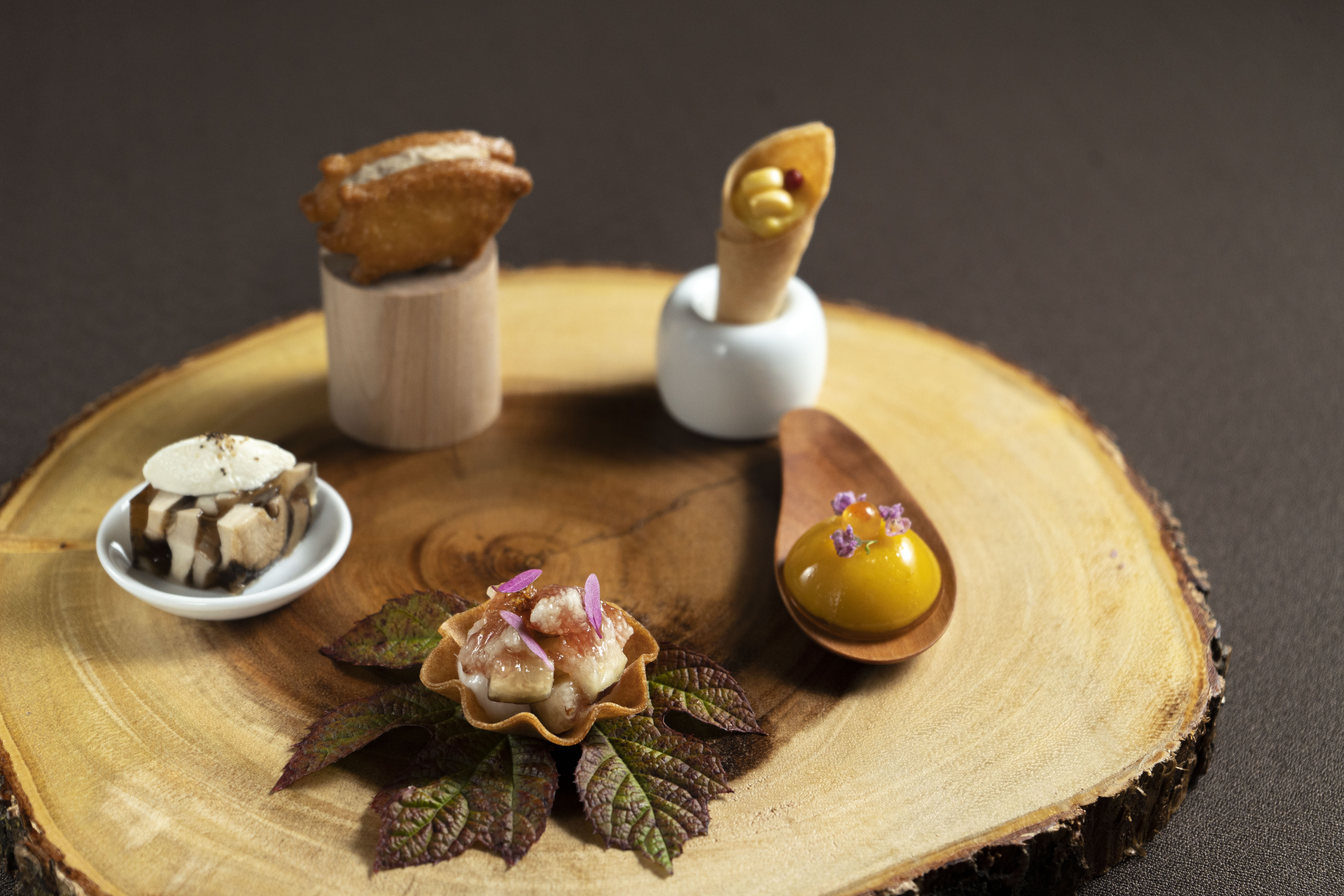 スペイン・バスク地方の伝統料理とフランス料理を融合させ、新感覚フレンチを創作する「Prince Etoile」では、淡泊で上品な味わいの秋に旬を迎える紅葉鯛と深い旨味と甘みを持つ足赤海老を香ばしく炙り、数種類の芳醇な香りの茸を使用したマリネと共に召し上がるさっぱりとした前菜をご用意。そのほか、夏から秋にかけて旬を迎え、脂乗りが美味とされる名残り鱧を揚げることで、外はサクサク、中はふんわりとした食感を再現し、バルサミコ酢にトリュフの風味をまとわせたソースと共に味わう逸品や、上品な風味と柔らかな食感を持つ淡路産マナガツオの外側は香ばしく、中はしっとりとジューシーに仕上げ、タプナードの濃厚さとサルサヴェルデの爽やかさが絶妙に組み合わさったソースでお愉しみいただける魚料理。深い味わいとジューシーさがある淡路産椚座牛のフィレを高温で焼き上げ、風味豊かな松茸のソースで贅沢にご堪能いただくメイン料理を提供いたします。デザートには、バスクチーズケーキのリッチな味わいと栗のほっくりとした甘さが融合した、秋に季節感溢れるスイーツもお愉しみいただけます。