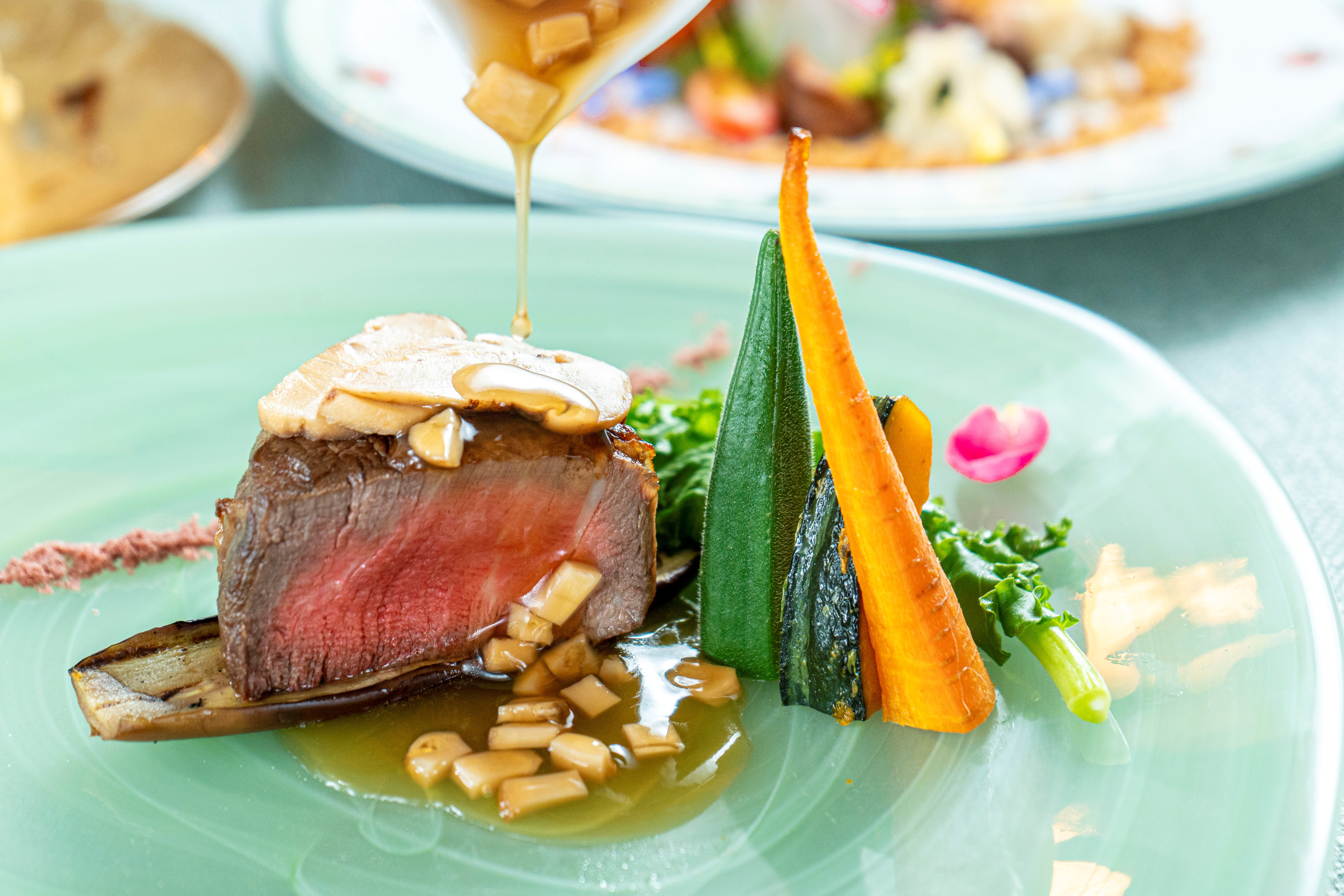 Viande:淡路産椚座牛フィレ肉のグリエ 秋野菜を添えて 松茸のソース