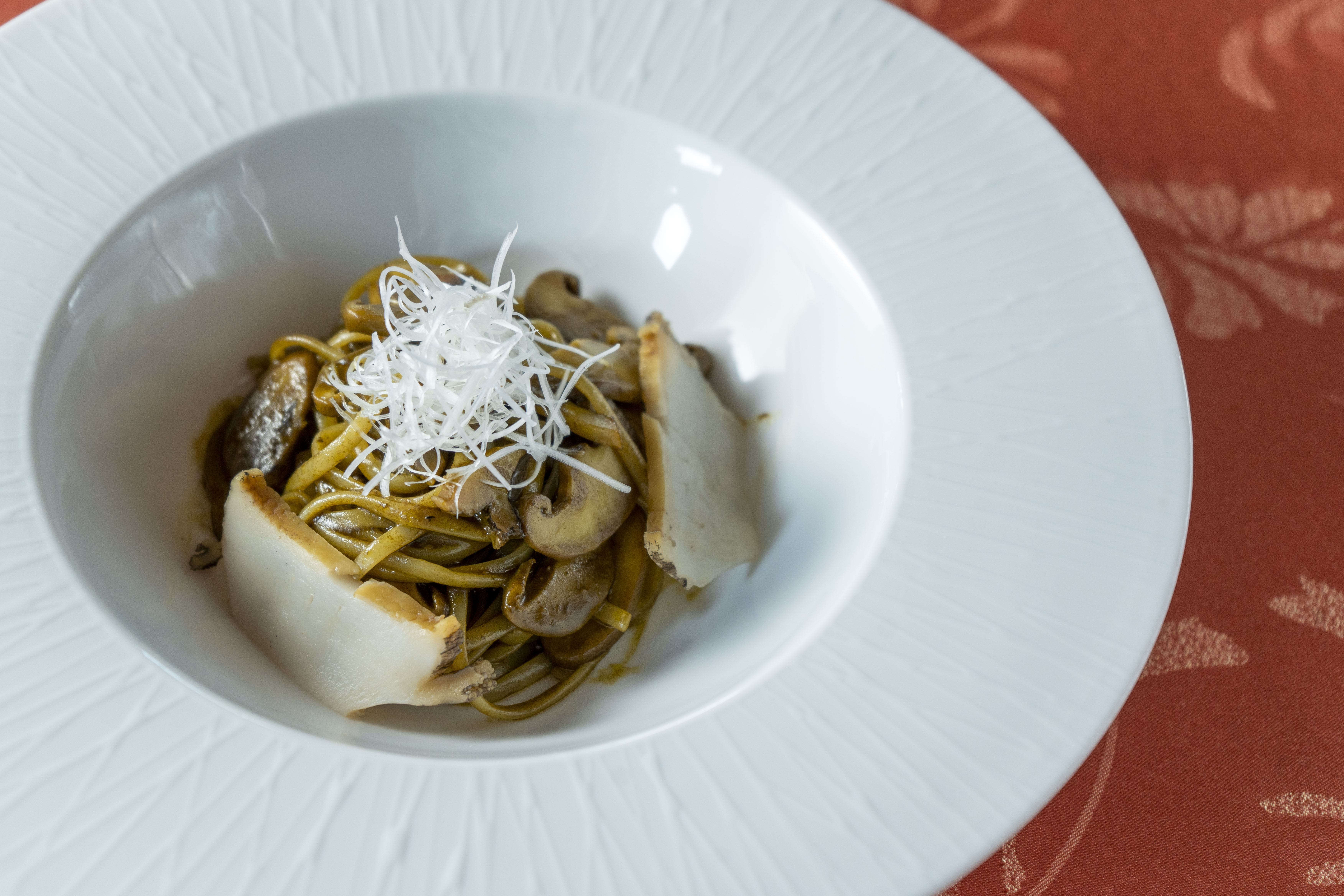 Pasta:淡路鮑と淡路椎茸のリングイネ