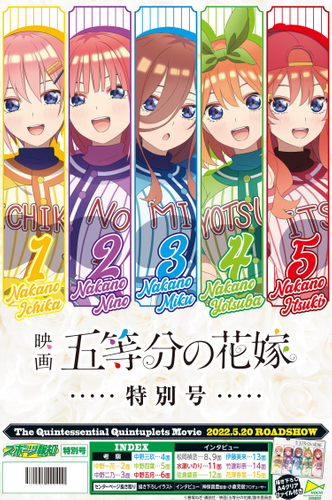 人気コミック原作のアニメ「五等分の花嫁」の最終章となる「映画 五等分の花嫁」の特集号。結末を受けてのキャストインタビューは、ファン注目の内容です。