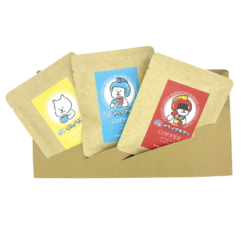 今回も、石巻市の珈琲工房いしかわ(株式会社いしかわ)のストレートコーヒーを「イシノマキマン」のパッケージで発売しました。
