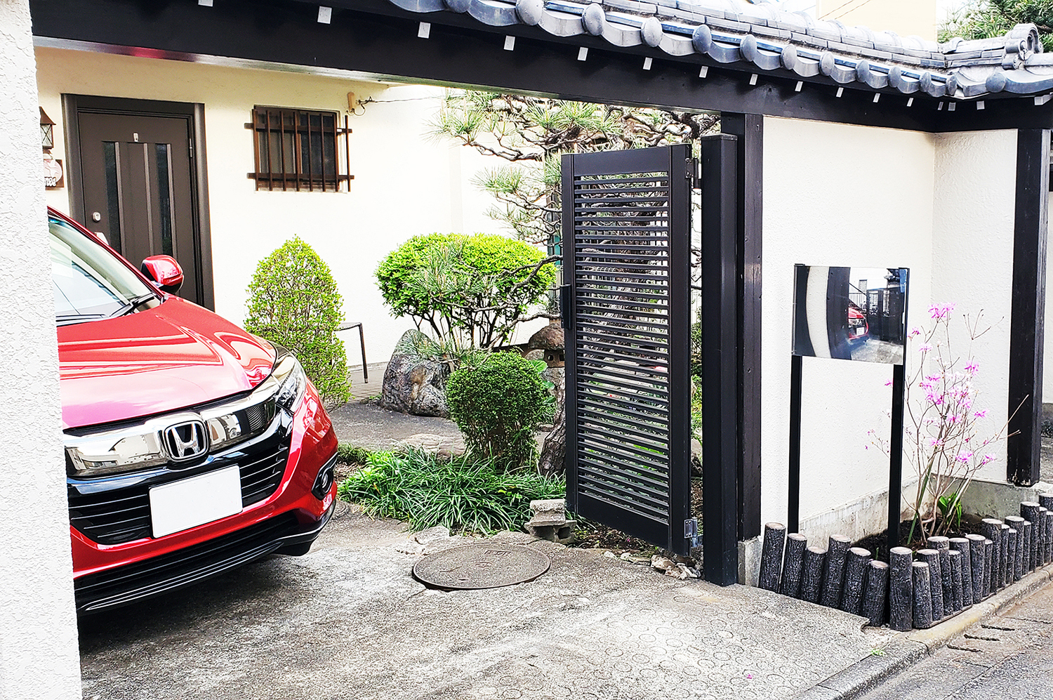 駐車場用FFミラーは出庫する際に、左右の安全確認・衝突防止に役立ってきました。ミラーを壁面に取り付けても出っ張らず、スッキリと設置できると好評です。
