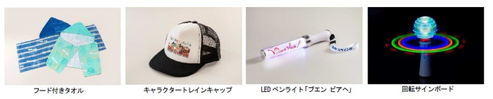 キャラクターたちのデザインがかわいいフード付きタオルやキャップなど、夏に大活躍のグッズを販売します。また、志摩スペイン村の夜がもっと楽しくなる光るグッズもおすすめです。