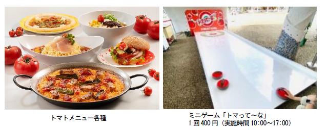 スペインのバレンシアで毎年夏に開催されている「トマトまつり」をテーマに、トマトを使った冷製メニューやハンバーガーなどを販売します。トマトに見立てたストーンを投げて滑らせるカーリングゲーム「トマって~な!」では、見事、ストーンが的に止まると景品をプレゼントします。