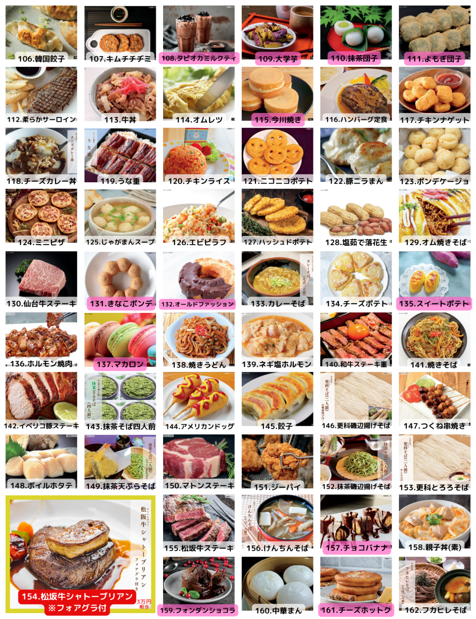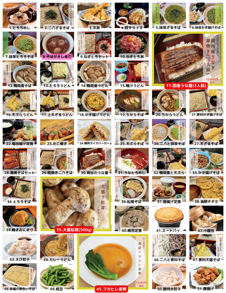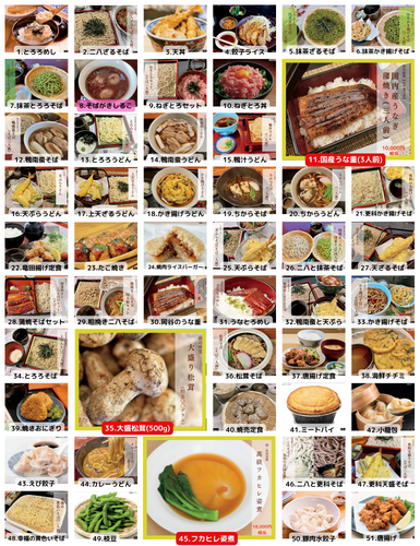 ◯商品一例 :ステーキ・うな重・唐揚げ等。