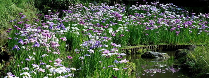 東京のオアシスで、優美なハナショウブに彩られた新緑の美しい田園風景をお楽しみください。