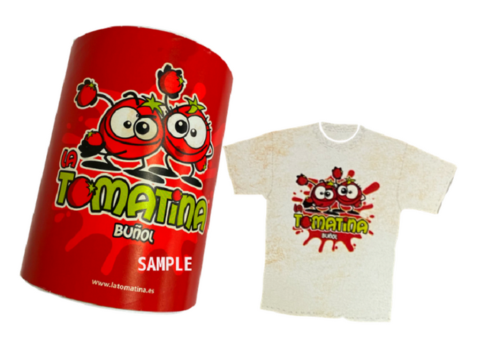[みゅう]トマティーナのツアーにご参加いただいたお客様限定の、[みゅう]オリジナルTシャツです。残念ながら今年は中止となりましたが、是非この水色のTシャツを来年のトマティーナで真っ赤に染めるご準備を!