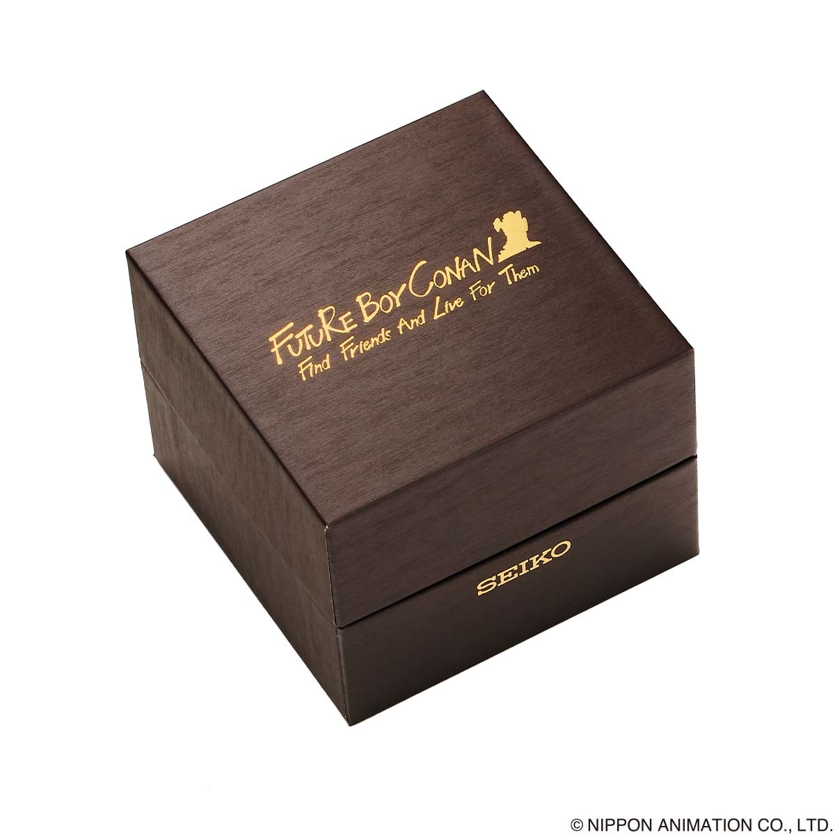 腕時計は、英語タイトル『FUTURE BOY CONAN』の箔押しが施された特製ボックスに収めてお届け。