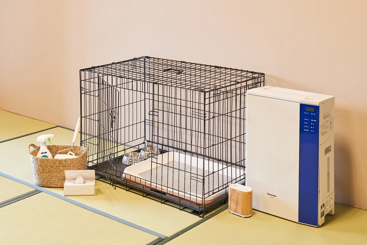 全室がわんちゃんと宿泊可能な客室となっております。リニューアルに伴い、わんちゃんの足腰に負担がかからないよう客室の畳やカーペットなどを貼り替え、衛生対策のための「空間除菌脱臭機 ジアイーノ」も設置。あると便利なわんちゃん用のエチケットアイテムもご用意しております。