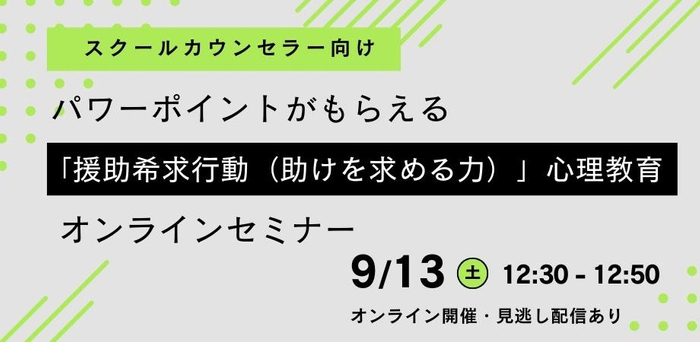 オンラインセミナー『【スクールカウンセラー向け】パワーポイントがもらえる「援助希求行動(助けを求める力)」心理教育オンラインセミナー』を開催します