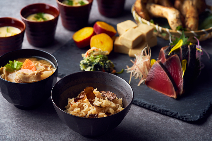 松茸ご飯, 栗の茶碗蒸し, とん汁, 他