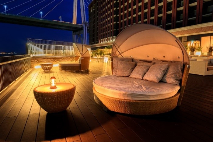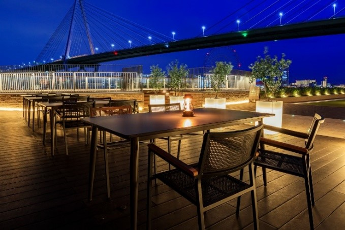 大阪ベイを一望できる、開放感たっぷりのテラス席