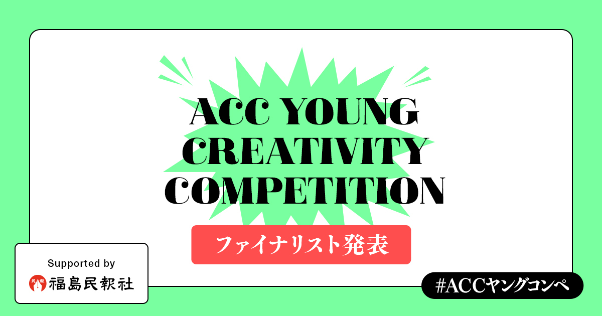 一般社団法人 ACC(英文名:All Japan Confederation of Creativity、東京都港区、理事長:小郷 三朗)は、30歳以下のあらゆるフィールドで活躍する若手を対象としたプログラム「ACC YOUNG CREATIVITY COMPETITION(ACCヤングコンペ)」のファイナリスト6チームを発表しました。