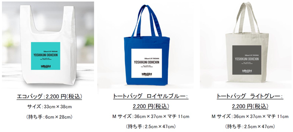 本公演限定のスペシャルロゴ『堂珍嘉邦 Billboard Live』をあしらった、スタイリッシュなデザインのエコバッグと2色のトートバッグです。