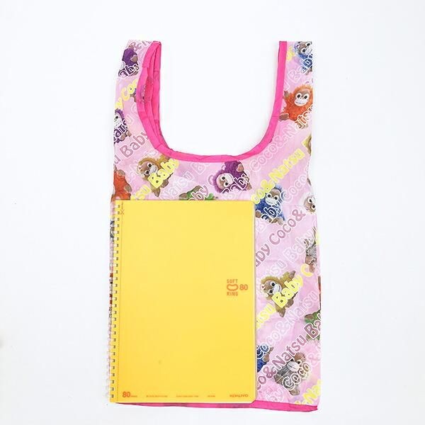こちらはベイビーナツのエコバッグ。ココのバッグよりシンプルだからこそ、はっきりした色合いがキュート!黄色とピンクの組み合わせって元気が出ますね。