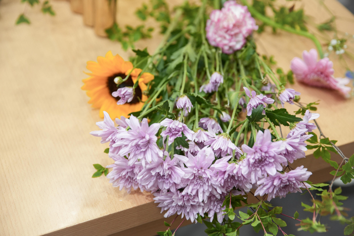 2021年の秋、留学生を対象に英語で華道の魅力を伝える「華道で国際交流」というイベントを開きました。華道の特徴を解説した後、私が生け花のデモストレーションを行い、その後、参加者が生け花を体験するというプログラムです。数人の仲間にサポートしてもらいましたが、想定よりかなり多くの参加者が集まり、まさにうれしい悲鳴でした。海外からリモートで参加してくれた留学生もいて、大好評だったようです。