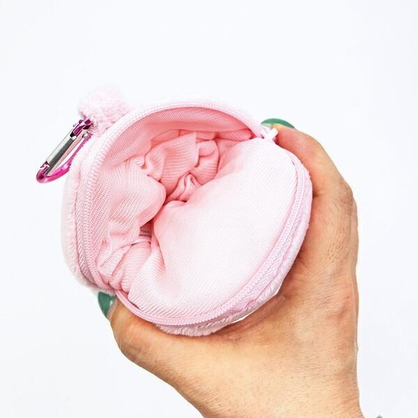 カラビナ(金具)付きなので、バッグに付けて、すぐに取り出したいものを入れてつけておくと便利です。実はポーチですが、キーホルダー感覚でつけることができそうです。サイズ:13cm×14cm×6cm 素材:ポリエステル