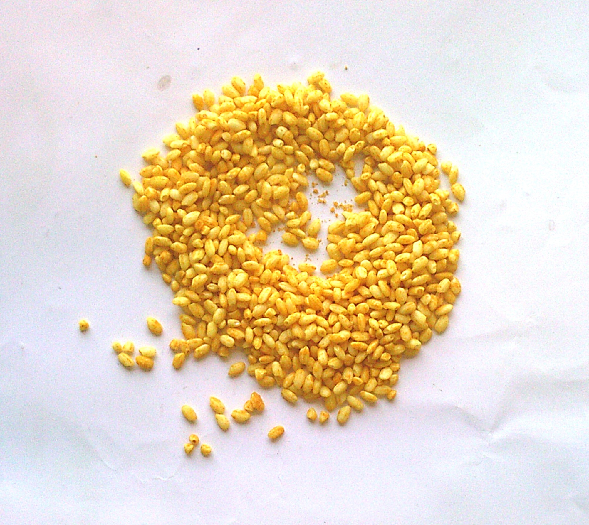 特許技術で九州産もち米一粒一粒をオリゴ糖やウコンやヒマワリの種や寒天や植物性乳酸菌K-1で加工融合した乳酸菌ウコン向日葵もち米で、白米に約10%混ぜて炊飯するだけで簡単に黄色でモチモチ甘くて美味しい幸せご飯を楽しめます。