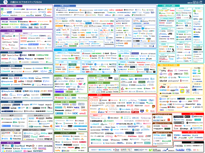 医療・介護・福祉分野におけるコミュニティ運営およびICT関連の情報を発信する"つながる介護"は、昨年に引き続き日本国内のICT・IoT、ロボットやサービスを独自の視点から分類した「介護DXカオスマップ 」2024年度版を公開しました。