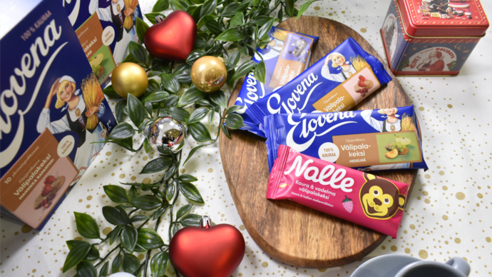 「エロヴェナ(Elovena)」は古くから北欧フィンランドで愛されている商品です。製造メーカーのライシオ社は創業80年の老舗オーツ麦メーカーとして、サステイナブルな生産に基づいたヘルシーな植物由来の食品を専門とするグローバル企業です。「エロヴェナ(Elovena)」は美しい水・綺麗で澄んだ空気のもとで育ったスーパーフード・オーツ麦を使用し、クランベリー、アプリコット、レーズン、りんご、ラズベリー、ストロベリー、ルバーブのドライフルーツや、ダークチョコレート、キャラメルが入ったビスケットで、100%の全粒オーツ麦を使用した豊富な栄養を含みます。