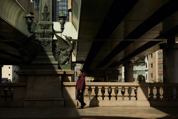 80年代、東京で生まれたTAKEO KIKUCHIのウェアには、海外の様式に日本らしさを取り入れた風景がよく似合う。 頬に湿気を感じる季節から、澄んだ空気が心地良い季節になっていく。 寒さに楽しみすら与えてくれるアウターを纏い、東京の街の中、美しく佇む。