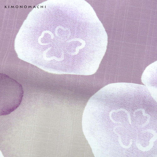 淡い紫色とグレーのぼかしの地。深い紫色の水玉と共に、白のミズクラゲが漂っています。淡くにじんだような表現がふわりと透明感のある印象です。